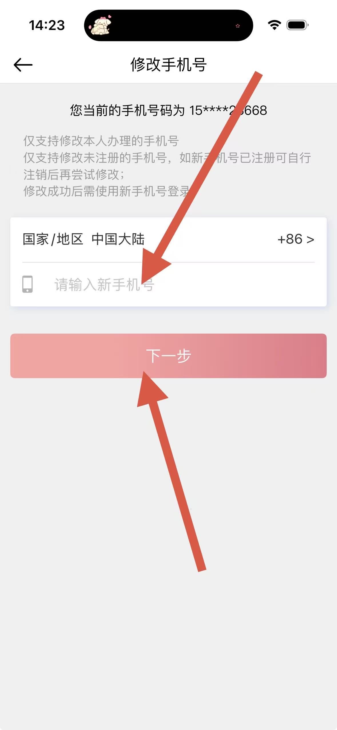 4、在修改手機號頁面,輸入新手機號后點擊下一步,即可修改手機號。