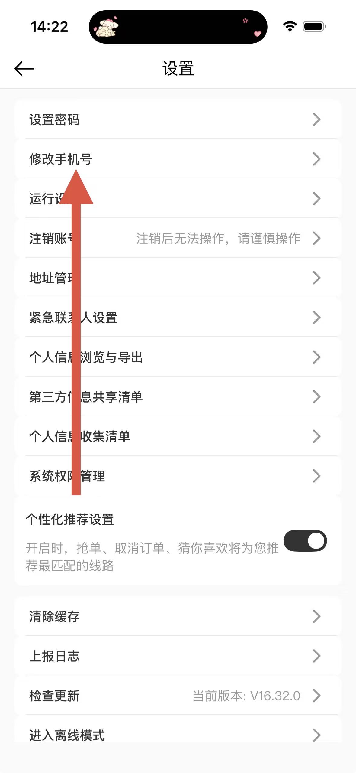 3、在設置界面里,找到并點擊修改手機號選項。