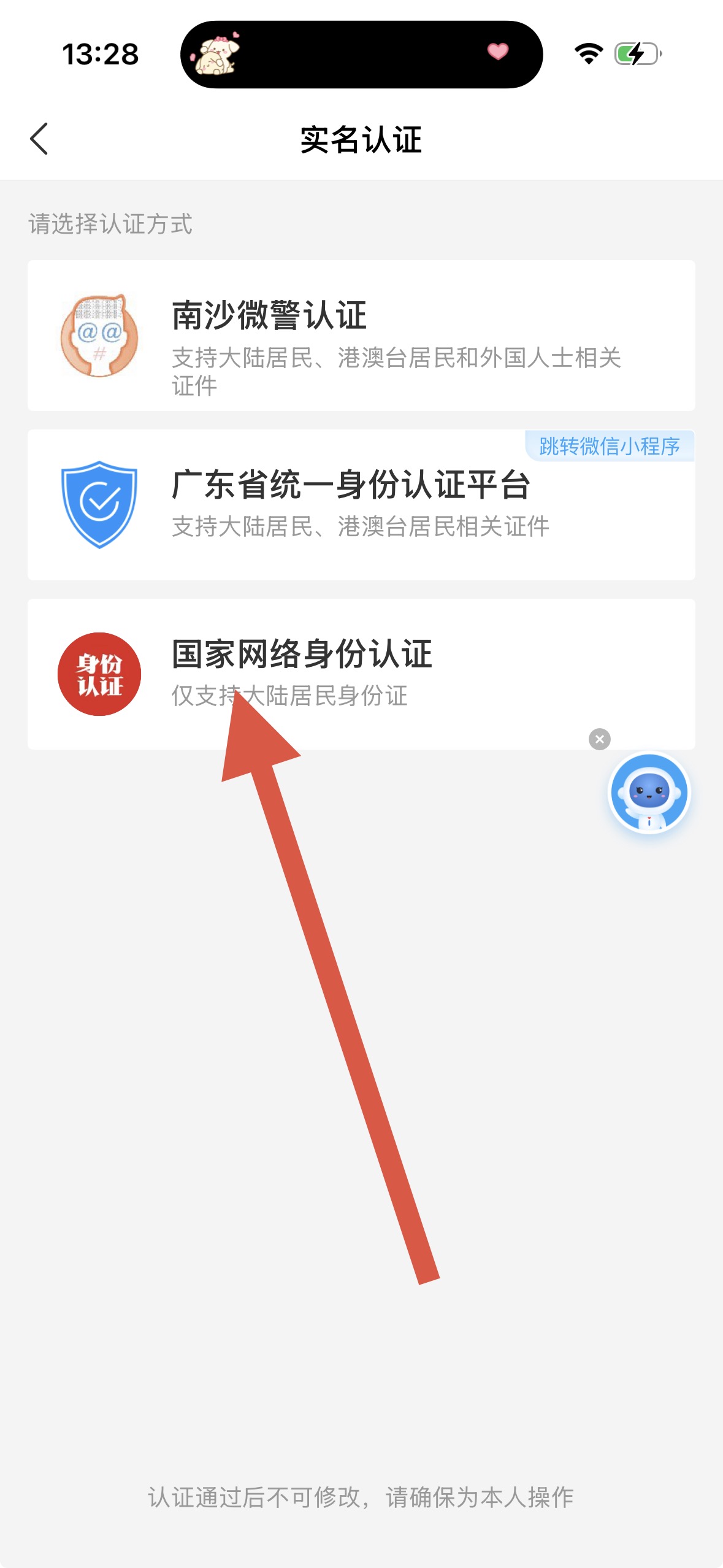 3、在實名認證界面,選擇合適的認證方式如國家網絡身份認證。
