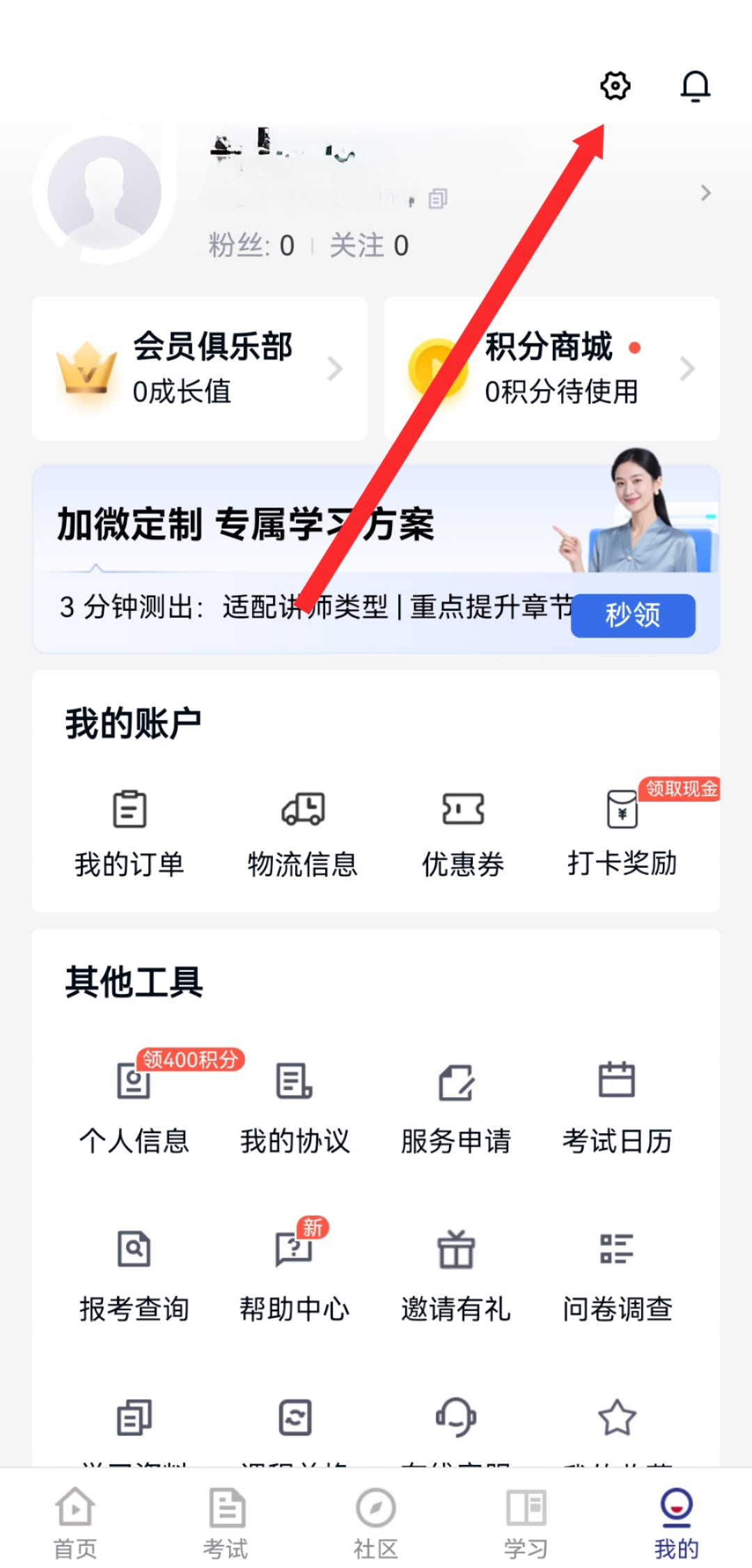 1、在我的頁面,我們需要點(diǎn)擊設(shè)置的圖標(biāo),進(jìn)入設(shè)置界面。