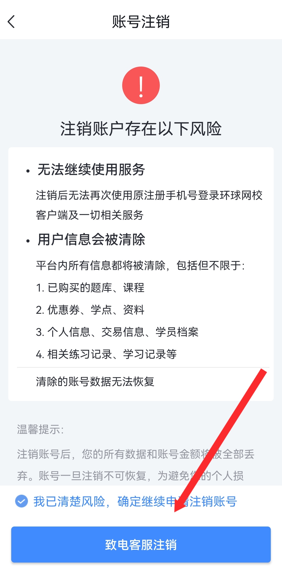 4、在注銷的說明頁,點(diǎn)擊致電客服注銷按鈕,完成賬號(hào)注銷。