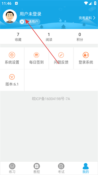 2、在我的頁(yè)面中,找到并點(diǎn)擊用戶未登錄的頭像區(qū)域,進(jìn)入登錄注冊(cè)相關(guān)界面。