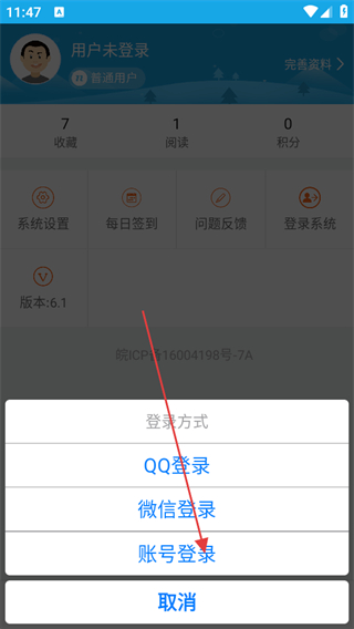 3、在跳轉(zhuǎn)的界面中,選擇賬號(hào)登錄選項(xiàng),進(jìn)入賬號(hào)注冊(cè)或登錄的操作頁(yè)面。