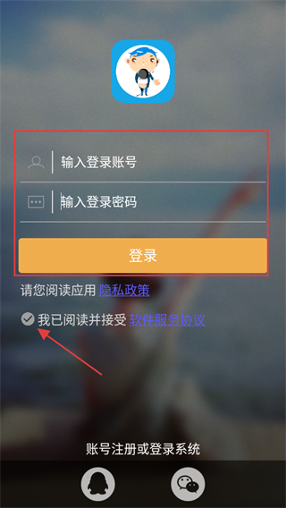 4、輸入手機(jī)號(hào)、登錄密碼,勾選我已閱讀并接受軟件服務(wù)協(xié)議,點(diǎn)擊注冊(cè)按鈕。