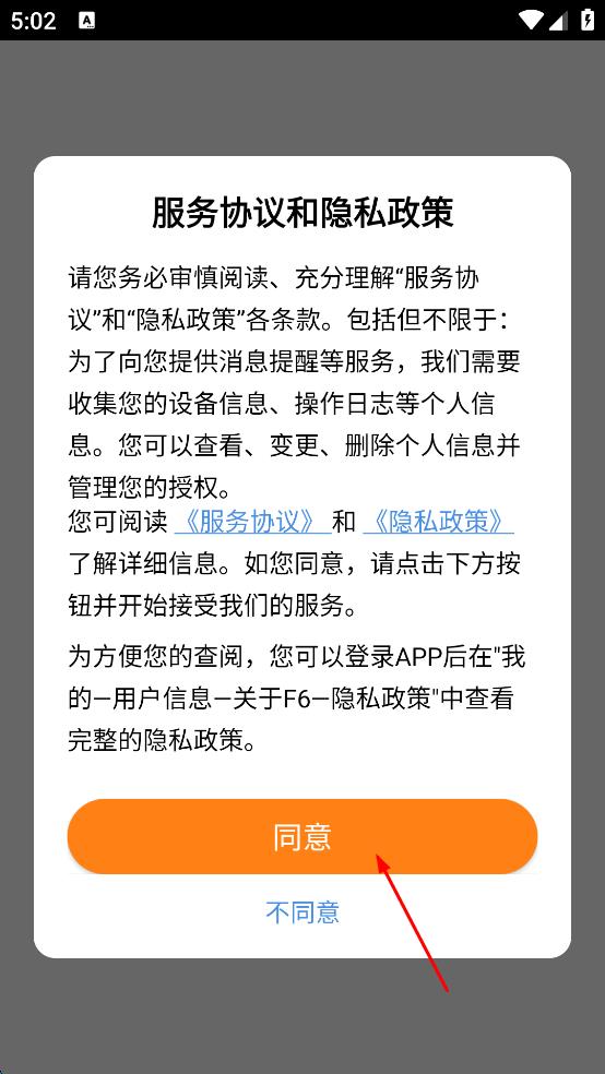 1、打開智慧門店APP,會(huì)彈出服務(wù)協(xié)議和隱私政策提示框,仔細(xì)閱讀相關(guān)內(nèi)容后,點(diǎn)擊“同意”按鈕,進(jìn)入APP登錄界面。