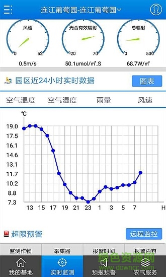 1.以圖表的方式直觀(guān)的展示了基地內(nèi)的空氣溫度、濕度和雨量、風(fēng)速等數(shù)據(jù)。