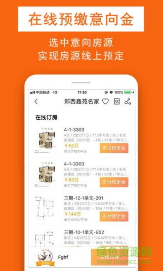 選中意向房源,了解房源面積、價(jià)格信息,在線預(yù)繳意向金,實(shí)現(xiàn)房源線上預(yù)定;