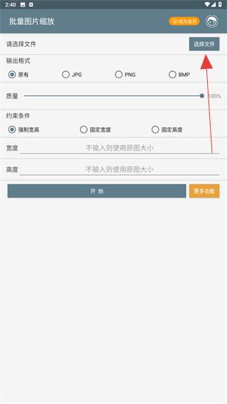 1、打開批量圖片縮放APP,進入時點擊選擇文件的功能按鈕。