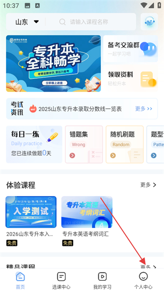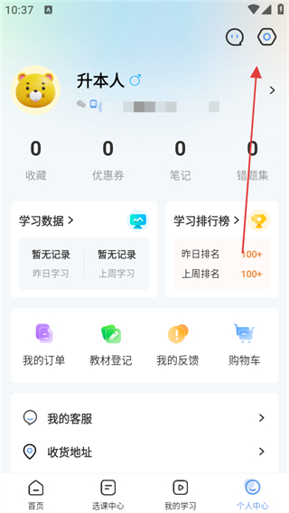 1、打開易學(xué)仕專升本APP,點(diǎn)擊底部導(dǎo)航欄中的個人中心選項(xiàng)。