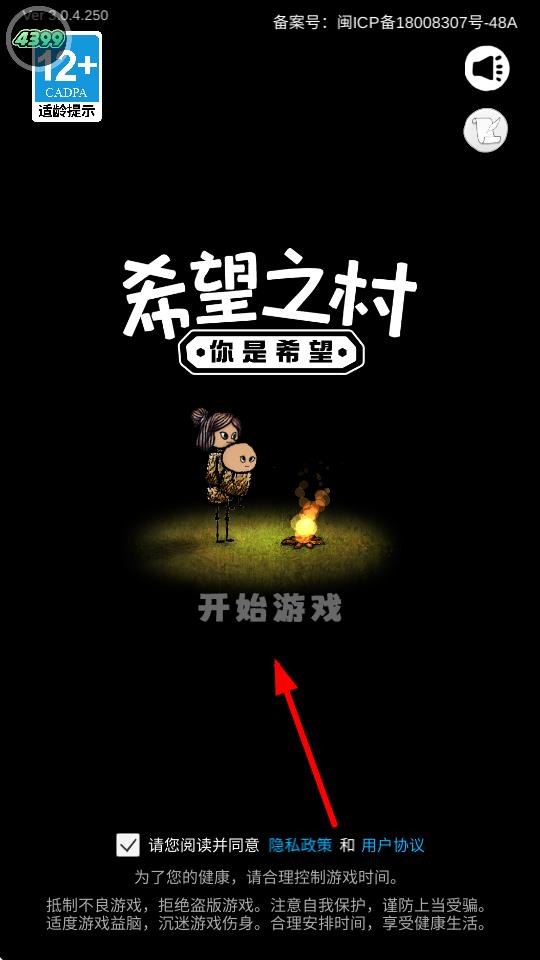 1、實名認證后,勾選請您閱讀并同意隱私政策和用戶協(xié)議,點擊開始游戲,進入游戲流程。