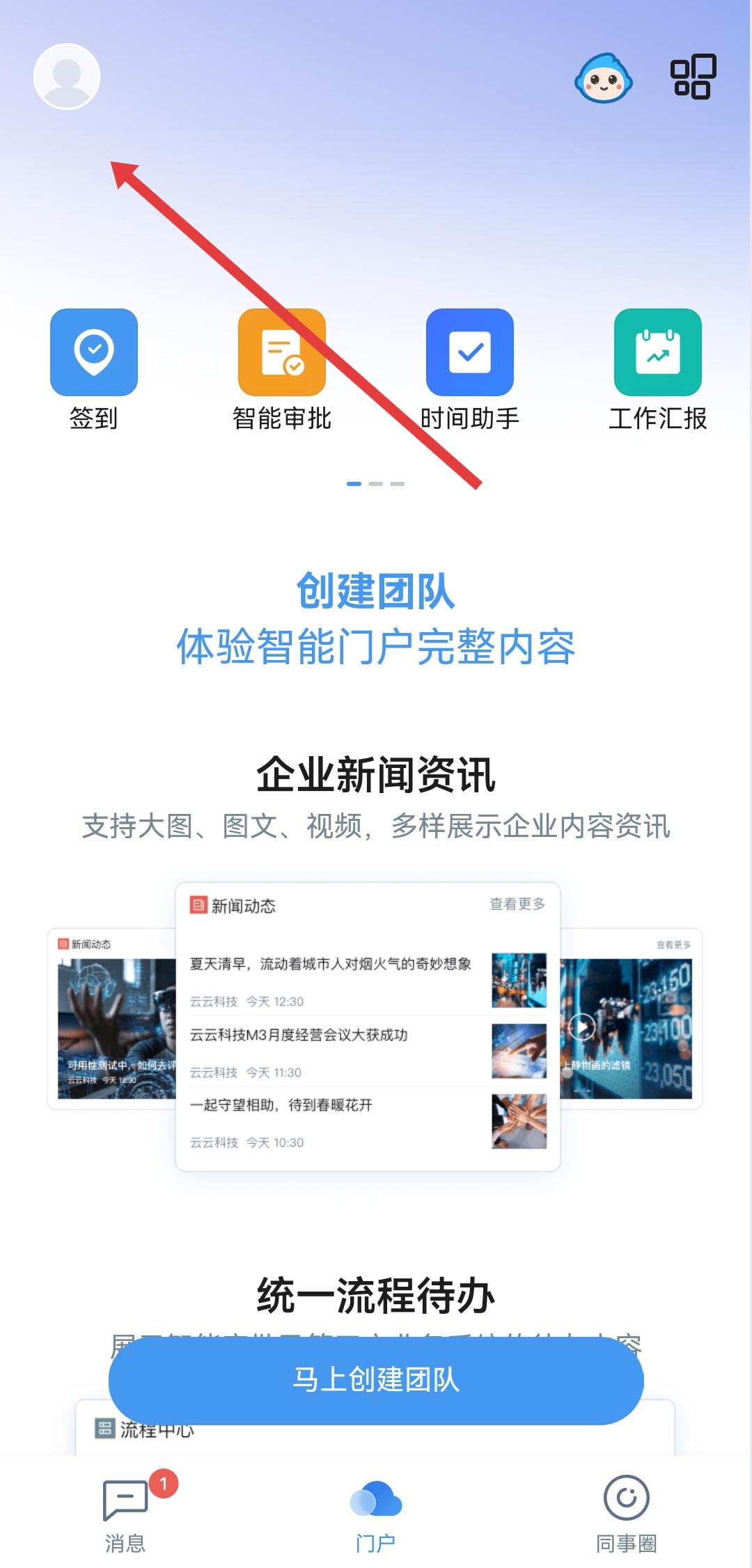 1、在云之家的主界面,點擊左上角的個人頭像,展開個人中心側邊欄。