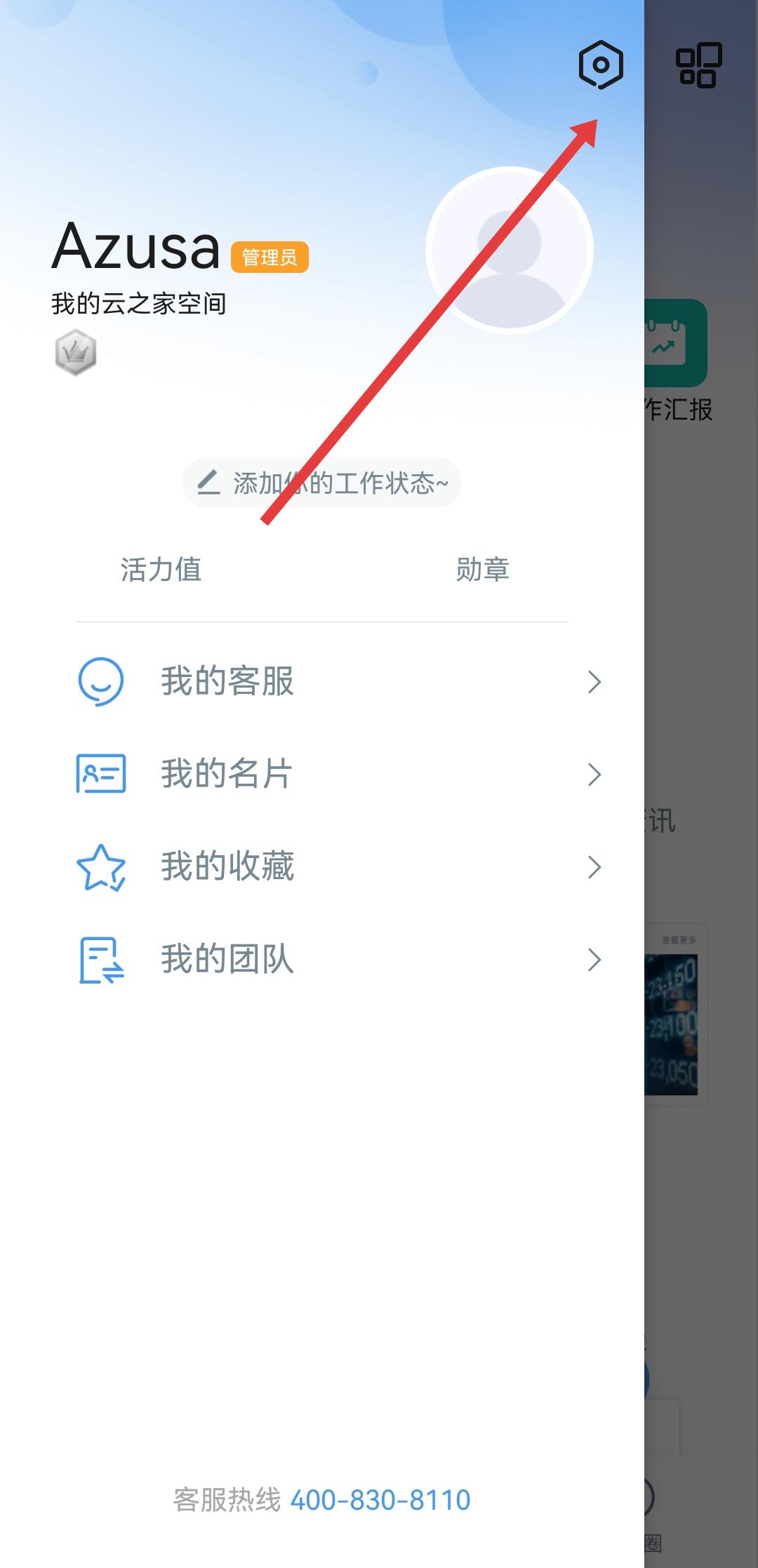2、在個人中心側邊欄,點擊右上角的設置圖標,進入設置與指南頁面。