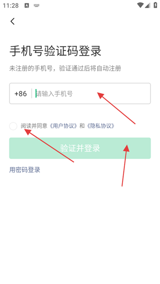 2、輸入手機(jī)號,勾選用戶協(xié)議和隱私協(xié)議,點(diǎn)擊驗(yàn)證并登錄。