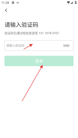 3、在請輸入驗(yàn)證碼頁面,填入接收到的驗(yàn)證碼,再點(diǎn)擊登錄。