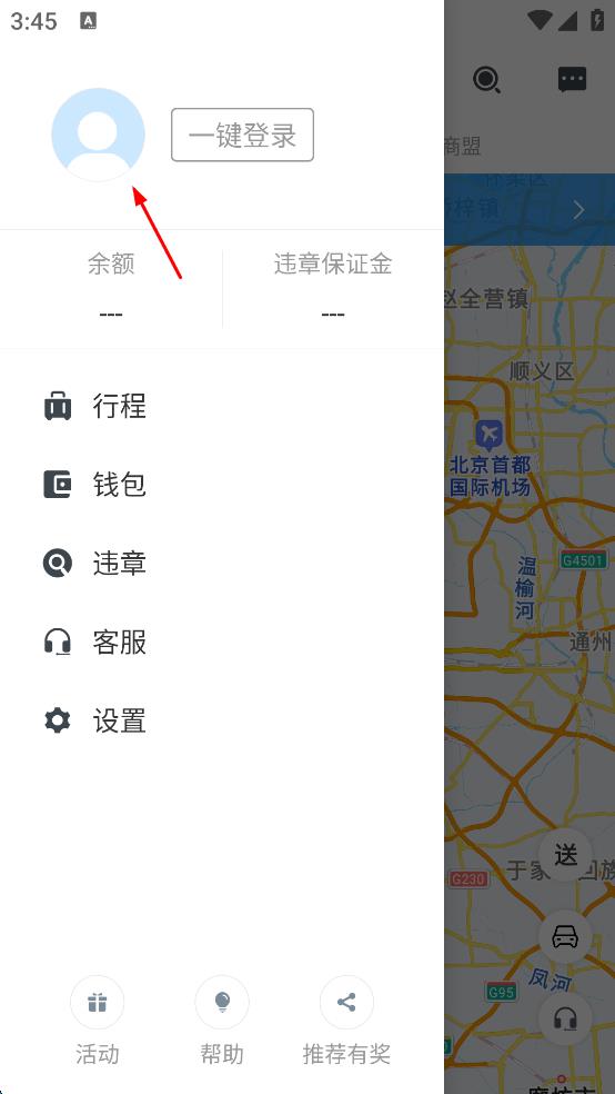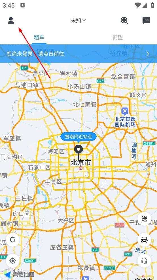 1、打開悠游出行軟件,在地圖界面左上角找到個人圖標,點擊該圖標,進入個人相關頁面。