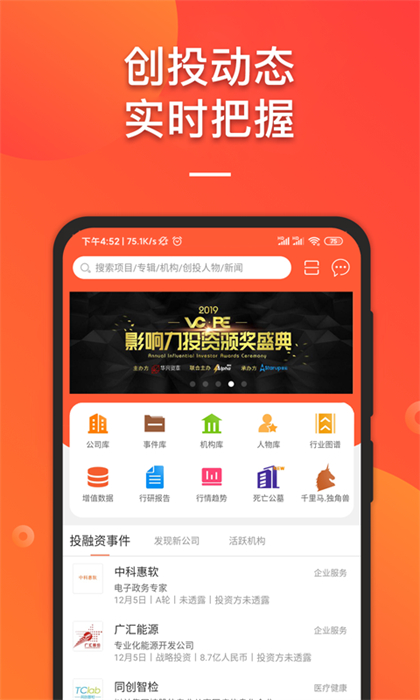 IT桔子app是整合了互聯(lián)網創(chuàng)業(yè)公司數(shù)據(jù)庫和投融資數(shù)據(jù)庫。為用戶提供海量創(chuàng)業(yè)公司數(shù)據(jù),讓你發(fā)現(xiàn)有潛力的合作伙伴,更準確的做好投資。還提供最新最全的投資新聞,讓你把握好每一投資的機會。趕快下載體驗吧!