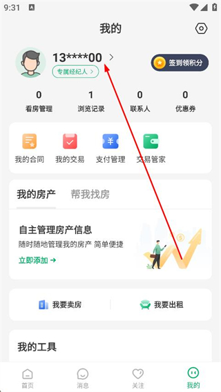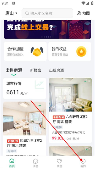 1、打開千家找房,點(diǎn)擊底部導(dǎo)航欄最右側(cè)我的選項(xiàng)。