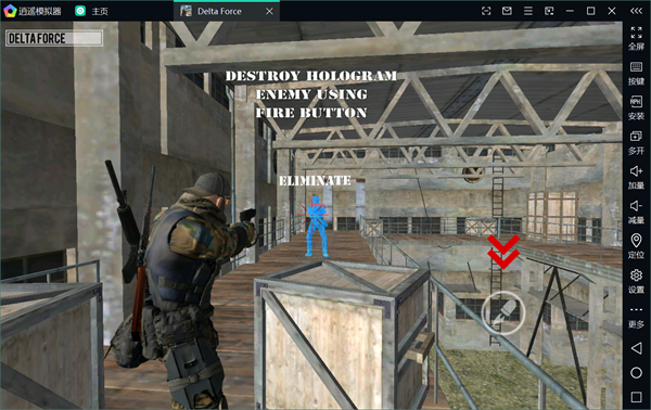 5、然后點擊右下位置的射擊按鈕,瞄準(zhǔn)虛擬假人進(jìn)行射擊即可,完后基礎(chǔ)教學(xué)后玩家就可以在游戲中開始冒險了。