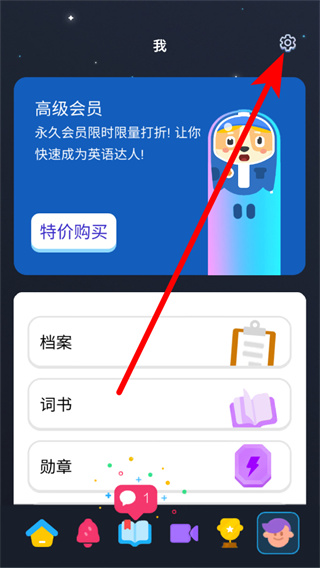 1、打開背詞達人APP,點擊底部導航欄最右側(cè)頭像圖標進入個人頁面。