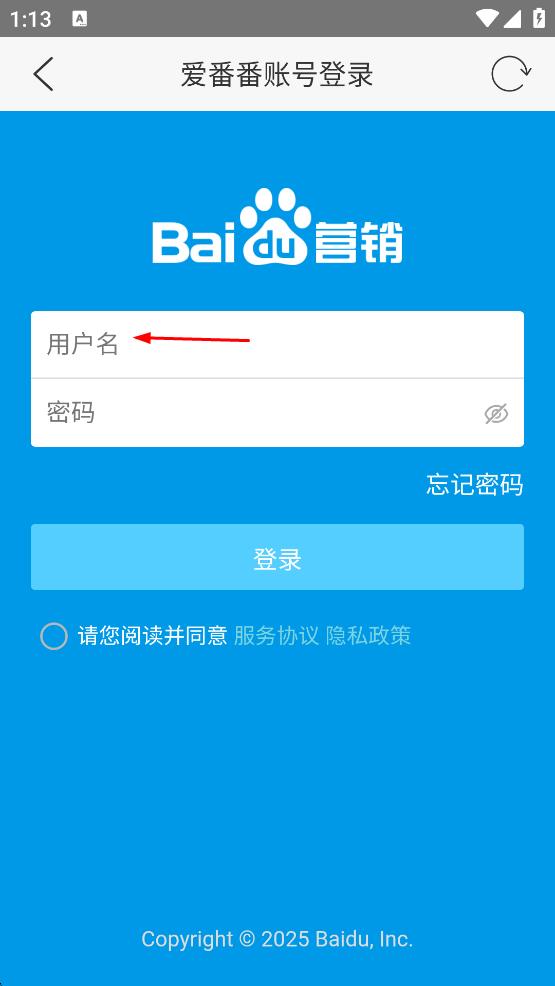 2、進(jìn)入愛(ài)番番賬號(hào)登錄頁(yè)面,在用戶(hù)名輸入框中輸入用戶(hù)名信息。
