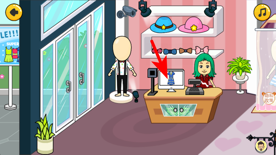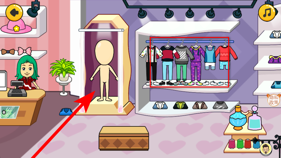 2、在游戲場(chǎng)景中,選擇感興趣的建筑如服裝店,點(diǎn)擊進(jìn)入。