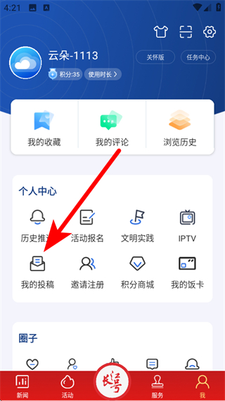 1、進(jìn)入到我的頁面,需要點擊我的投稿按鈕,進(jìn)入投稿的頁面。