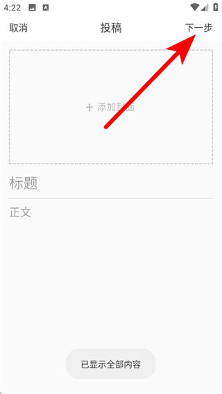 3、在頁面添加封面、填寫標(biāo)題和正文后,點擊下一步的按鈕。