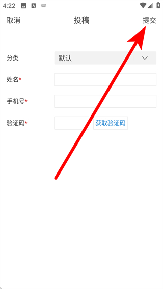 4、在信息填寫頁面,填寫信息獲取驗證碼后,點擊提交完成投稿操作。