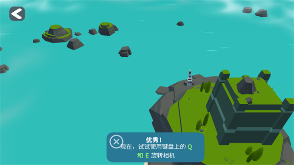 3、也可以試試使用鍵盤上的Q和E旋轉(zhuǎn)相機(jī),切換視角;
