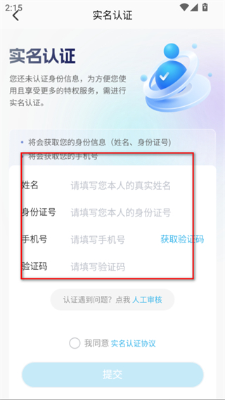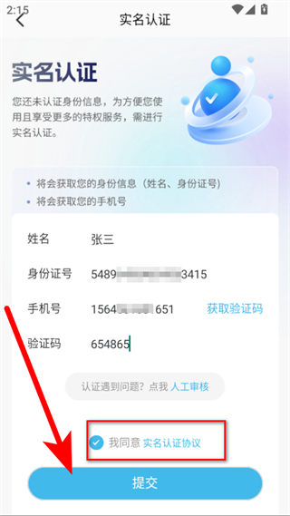 4、勾選我同意實(shí)名認(rèn)證協(xié)議后,點(diǎn)擊提交按鈕,即可完成實(shí)名認(rèn)證操作。