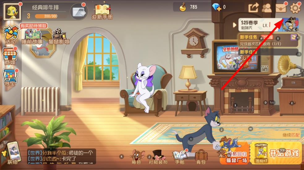 1、打開貓和老鼠游戲主界面,點擊右上角齒輪圖標,進入設置界面。