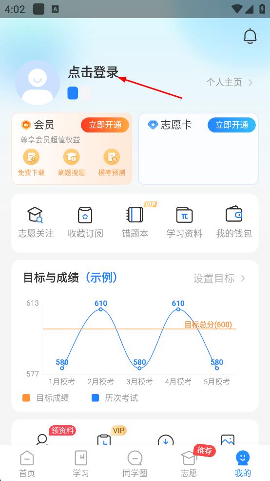 3、在個人相關(guān)頁面,點擊“點擊登錄”選項,進入登錄界面。