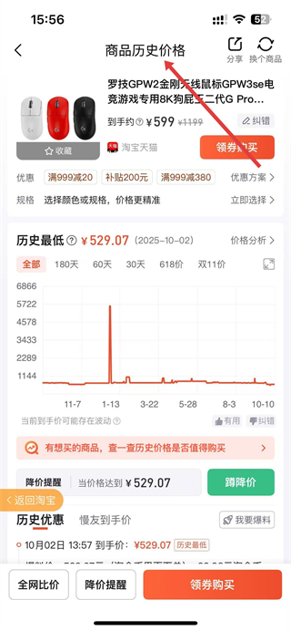 4、查詢完成后,在該頁面即可查看該商品的歷史價格。