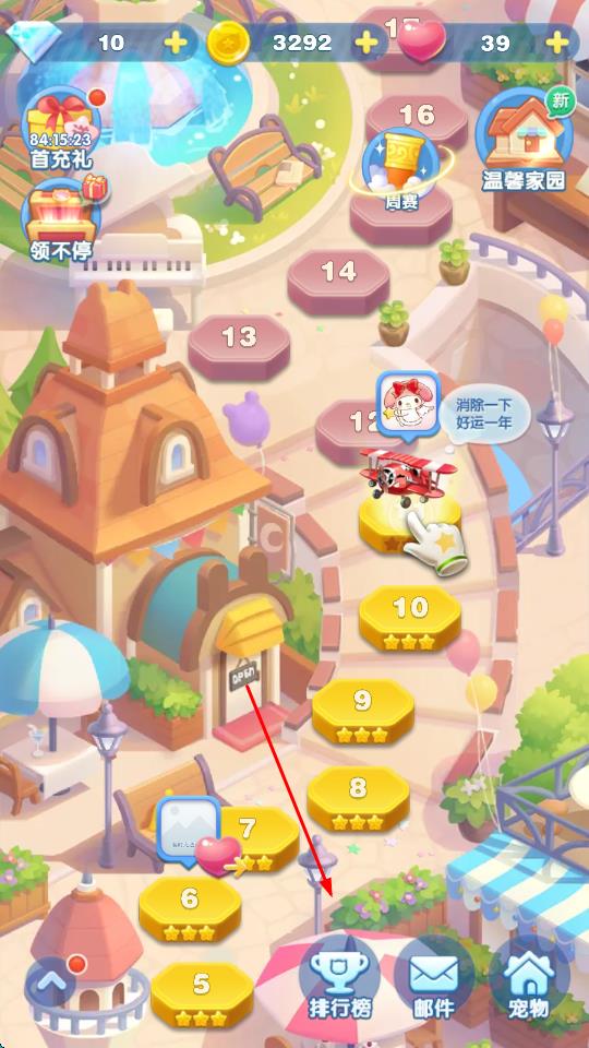 1、打開(kāi)天天愛(ài)消除游戲,進(jìn)入游戲主界面,點(diǎn)擊下方的排行榜圖標(biāo)。