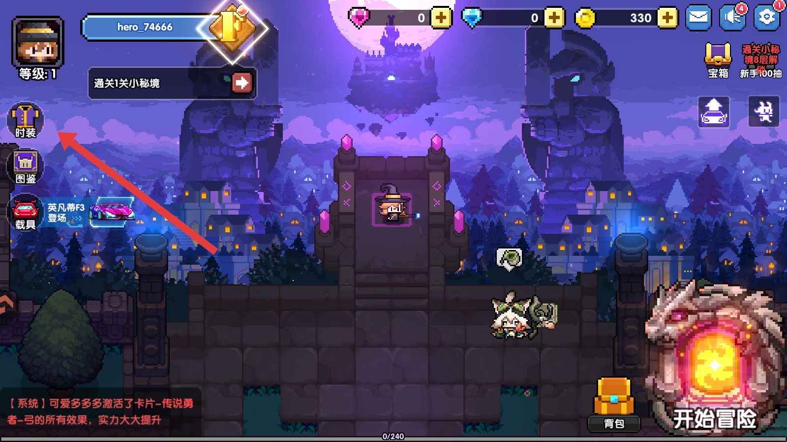 1、進入我的勇者游戲主界面,點擊左側的時裝圖標,進入時裝系統(tǒng)界面。