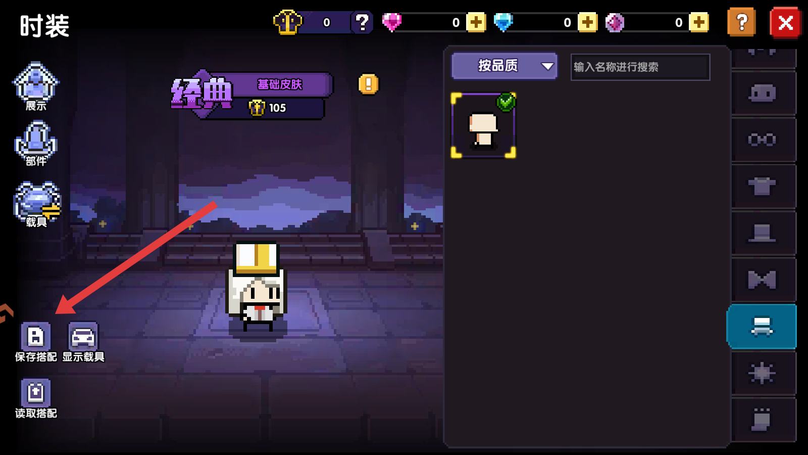 4、完成時裝搭配后,若想保存當前搭配,點擊左下方的保存搭配按鈕,下次可通過讀取搭配快速應用該套時裝搭配,方便又快捷。