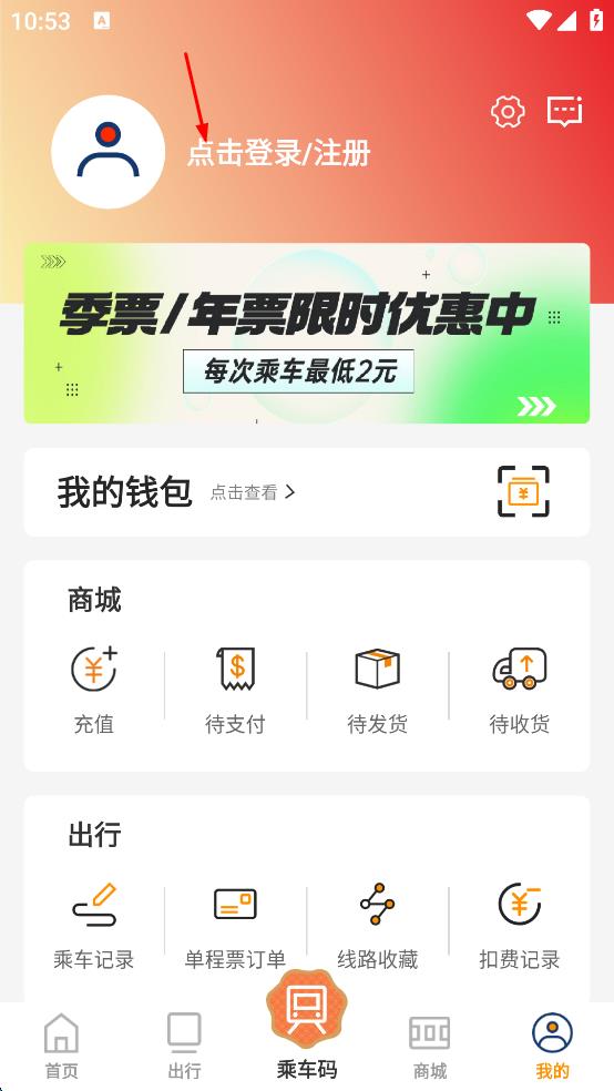 2、在“我的”頁(yè)面,找到上方的“點(diǎn)擊登錄/注冊(cè)”按鈕,點(diǎn)擊該按鈕。