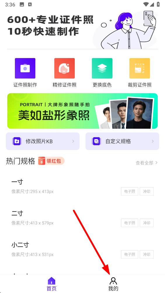 1、打開最美證件照制作APP,點擊底部導航欄中的我的選項,進入個人中心頁面。