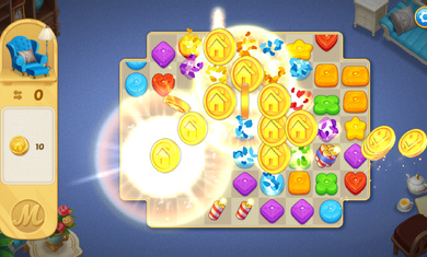 通過(guò)消除關(guān)卡你可以獲得金幣和星星,收集足夠的星星可以完成游戲的劇情任務(wù);