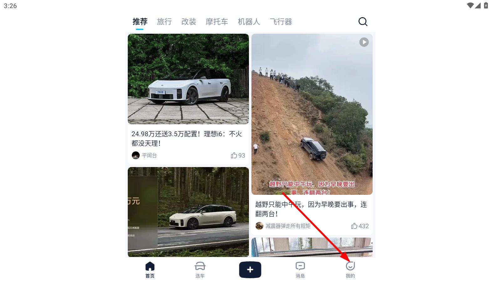 1、打開(kāi)汽車之家極速版APP,點(diǎn)擊底部導(dǎo)航欄最右側(cè)的我的,進(jìn)入個(gè)人頁(yè)面。