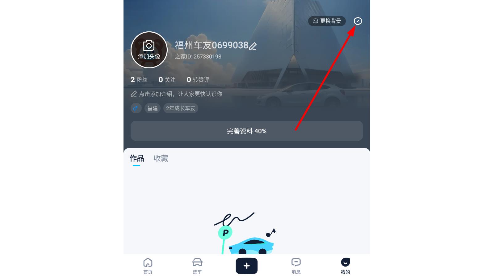 2、在個(gè)人頁(yè)面中,點(diǎn)擊右上角的設(shè)置圖標(biāo),進(jìn)入設(shè)置界面。