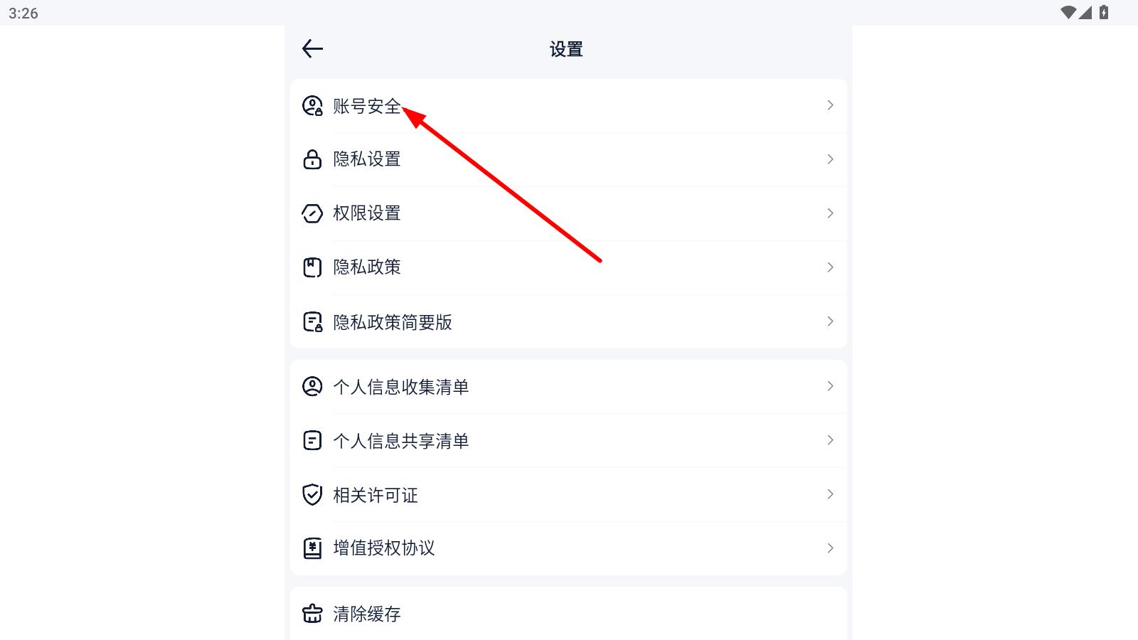 3、在設(shè)置界面里,找到并點(diǎn)擊賬號(hào)安全選項(xiàng),進(jìn)入賬號(hào)安全中心。