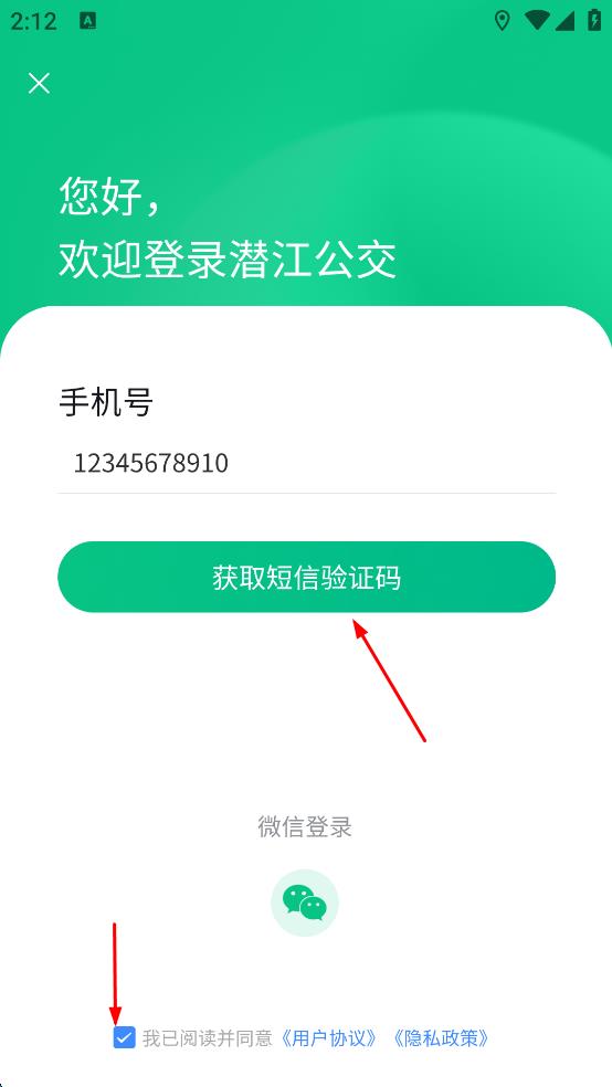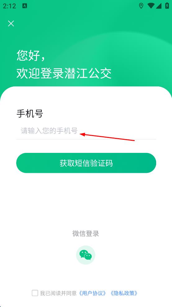 2、在登錄相關(guān)頁面,輸入手機號碼,勾選“我已閱讀并同意用戶協(xié)議,隱私政策。