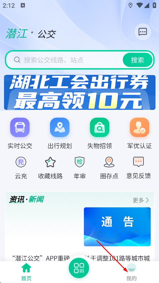 1、打開潛江公交軟件,點擊頁面右下角“我的”選項,進入登錄相關(guān)頁面。
