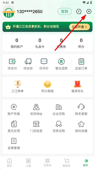 1、打開三江云菜app,點擊底部導(dǎo)航欄中的我的選項,進入相關(guān)頁面。