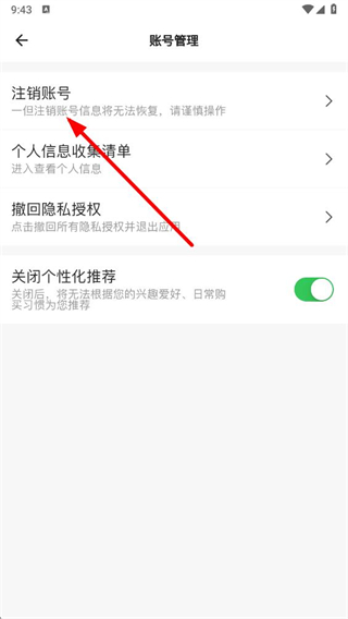 4、在賬號管理頁面,點擊注銷賬號選項,進入注銷賬號確認頁面。