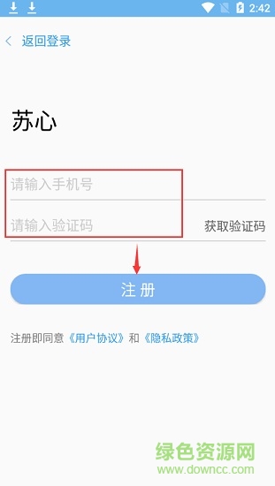 輸入手機(jī)號(hào)碼信息,再次點(diǎn)擊注冊(cè)按鈕,注冊(cè)成功后返回登錄界面使用!