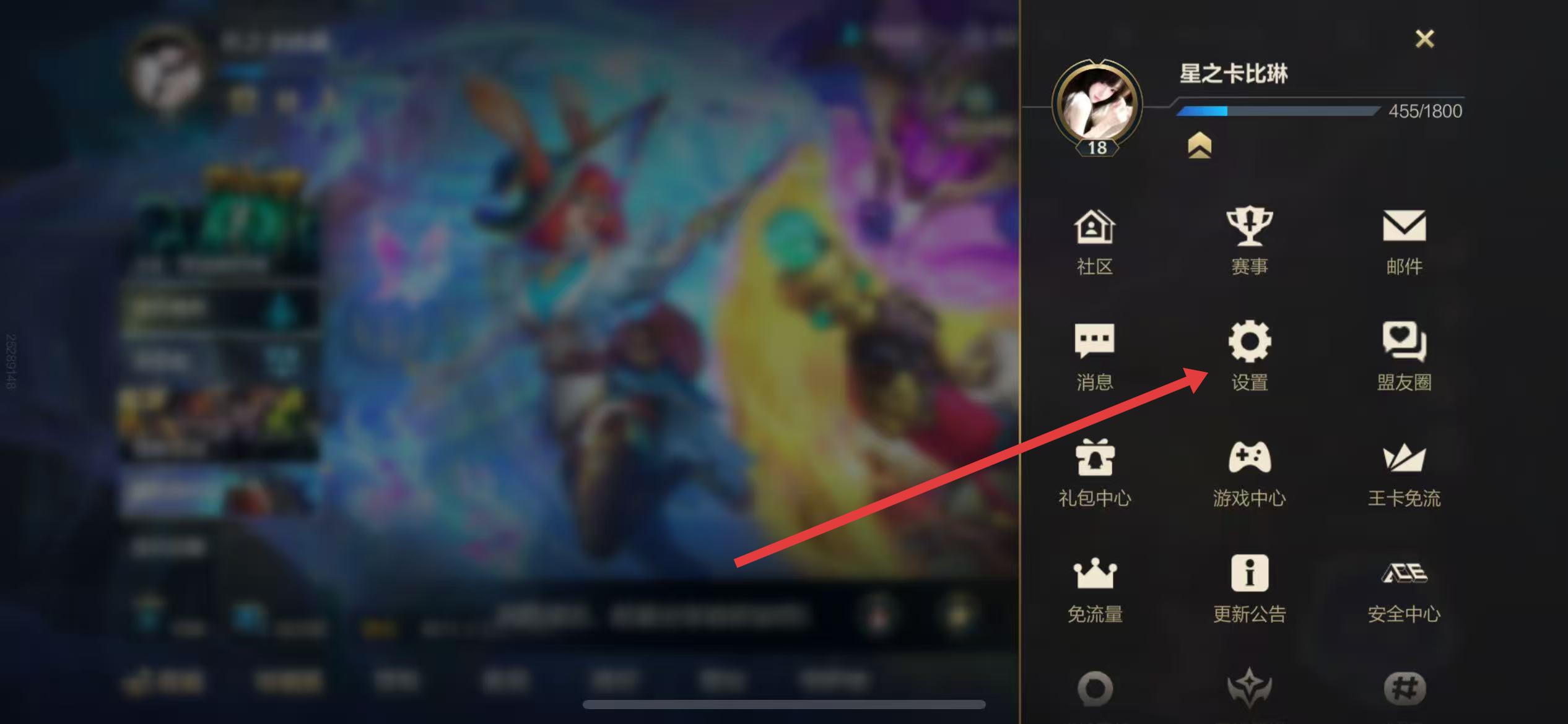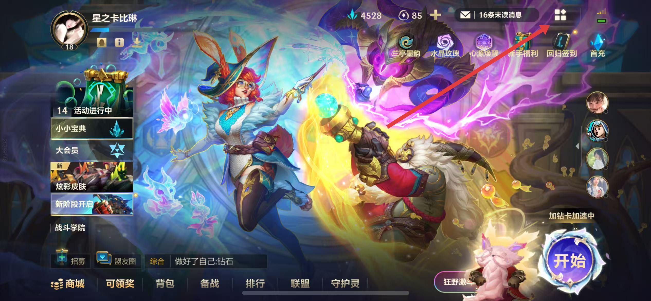 1、打開英雄聯(lián)盟手游,進入游戲主界面,點擊右上角的菜單進入該頁面。