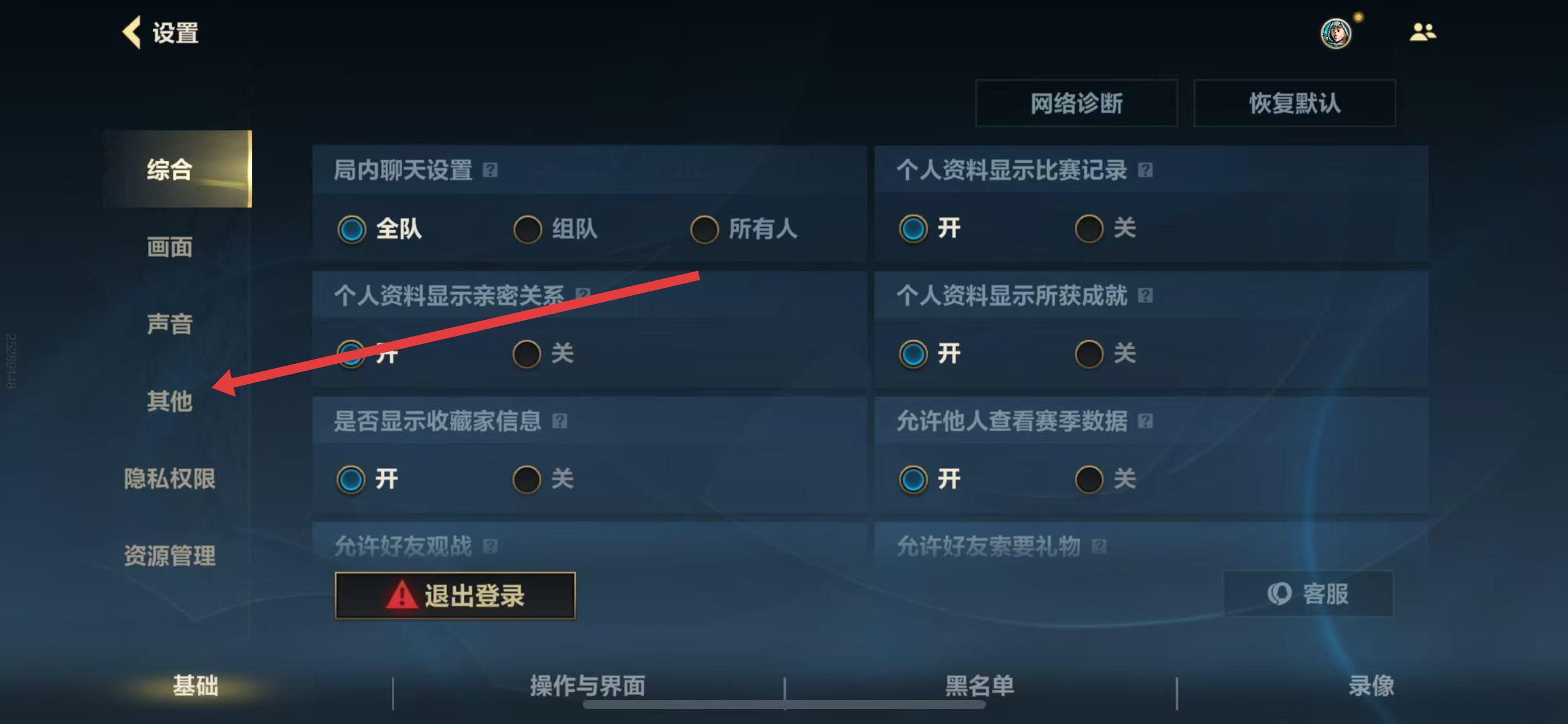 3、在設置界面中,點擊左側菜單欄里的其他選項,進入其他設置頁面。