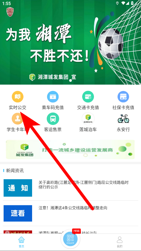 1、在相關(guān)APP首頁(yè),點(diǎn)擊實(shí)時(shí)公交選項(xiàng),進(jìn)入公交查詢頁(yè)面。